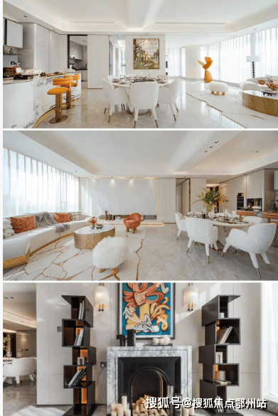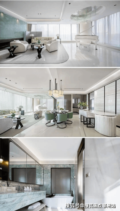 精装修采用奢玉背景墙、整包皮革、大理石地面、闪粉烤漆柜门等,硬装部分使用嘉格纳、高仪、博世、唯宝、弗兰卡等大牌,还有波浪纹理弧形穹顶、无缝化拼花工艺、嵌入式隐形精钢拉手、抗冲击朦胧美夹丝玻璃、柔和倒角处理及踢脚线暗线处理。