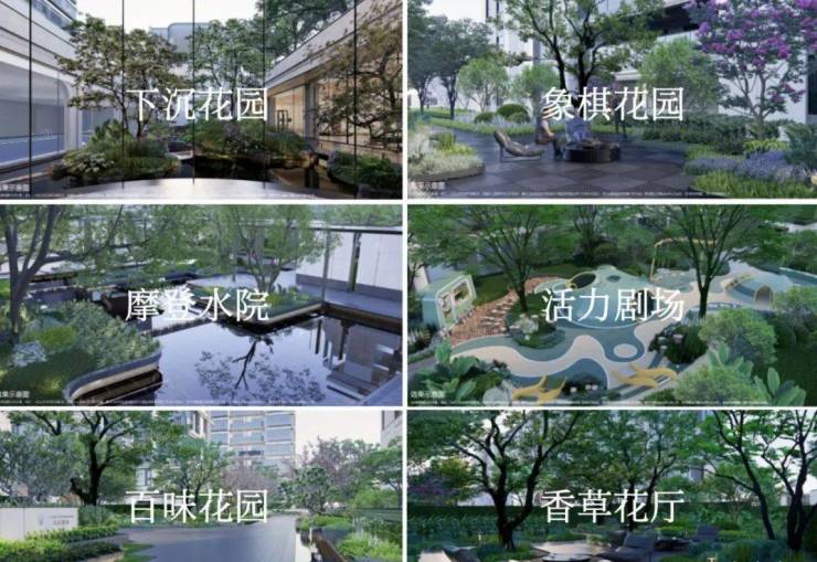 由香樟、迷迭香、夜来香等构筑的芳草花厅,缤纷色彩与清新芬芳相结合,为业主提供野餐、放风筝等场景活动;