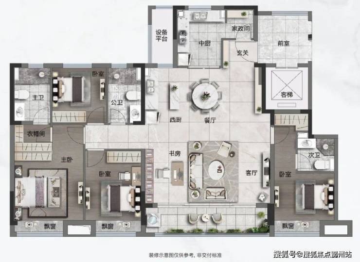 江山和悦府推出的 建面约98-169㎡户型 ,打破了户型的尺度限制,实现了功能与尺度的双重进阶。