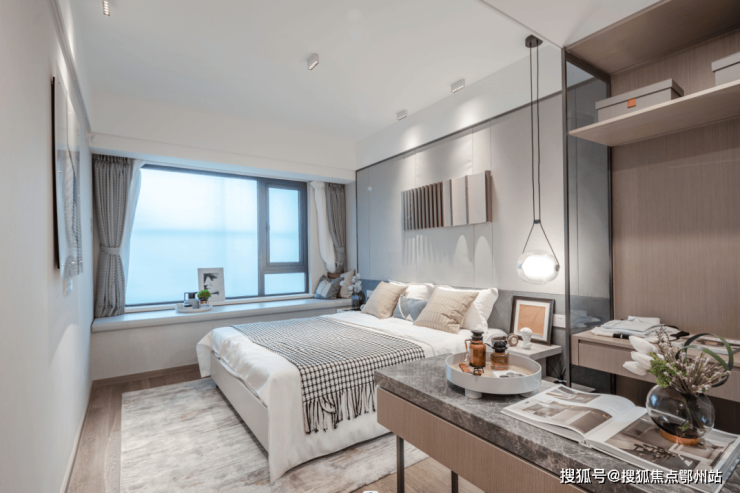 让父母们可以迎着阳光与微风,拥抱舒适慵懒的生活格调同样朝南的主卧套间,让阳光得以尽情洒入室内;
