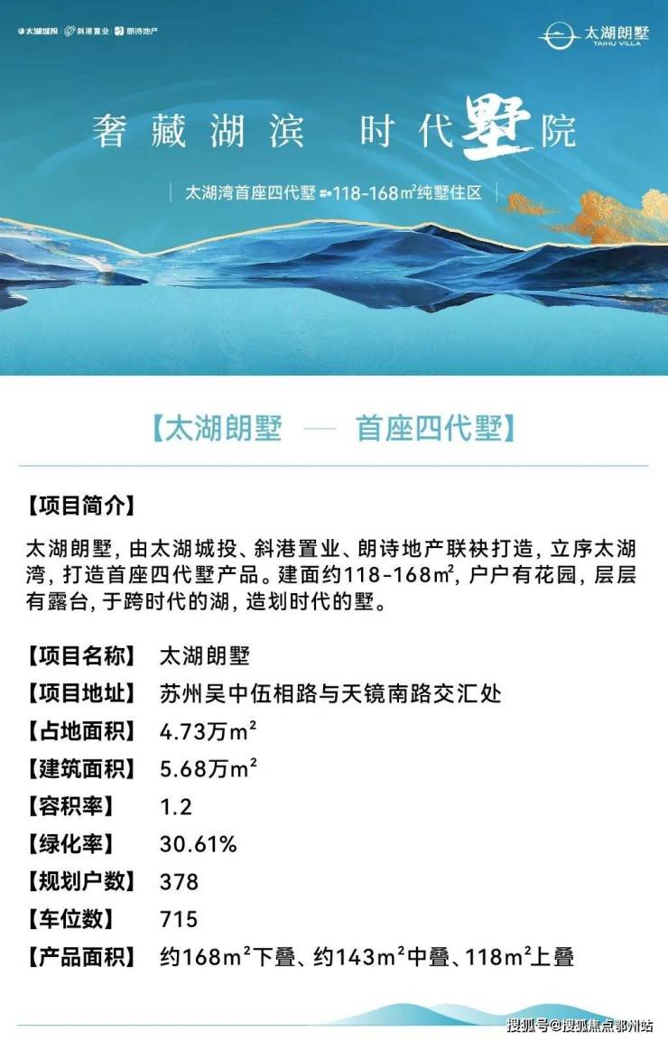 苏州太湖郎墅售楼处电话400-112-0302【售楼中心】苏州太湖郎墅项目纯叠墅户型设计丰富,户户有花园、层层有露台。社区规划归家仪式包括沉香米黄石大门、星空穹顶和62米中轴景观步道。价格区间待公布,最新动态2025年6月开盘。位于度假区香山街道,周边有地铁