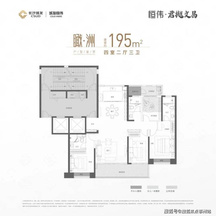 立足当代人居洞察,回应时代未来人居方式。沿袭君樾文昌户型体系打造建面约 195㎡「瞰洲」 作品,升级空间内涵,迭新时代人居美学。