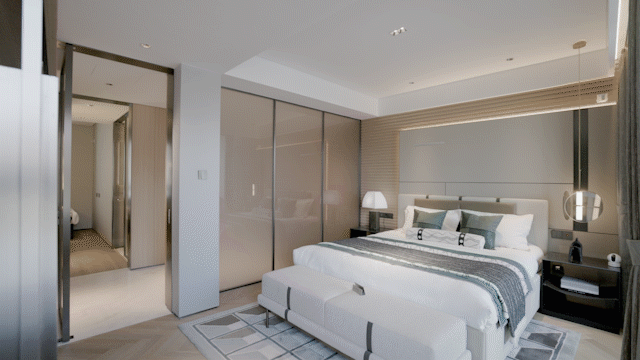 小区入口以 “U型围合式空间” 配合酒店式入户大门,打造五星级归家体验,门口设计了酒店式水景落客区,便利业主打车或临时停车的同时,也彰显了高品质精致生活。