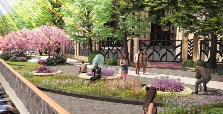 进入社区入口后,每条归家主干道上,采用常绿和落叶植物搭配种植,色彩随季节变化而变化,通过主轴串联各类活动交流空间,带给人不同的意境。