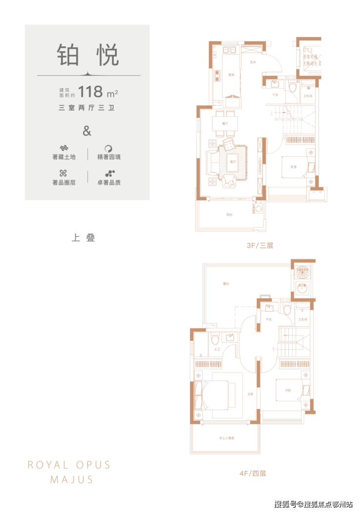 上叠: 118(3室2厅3卫),150(4室2厅3卫),200(4室2厅4卫)