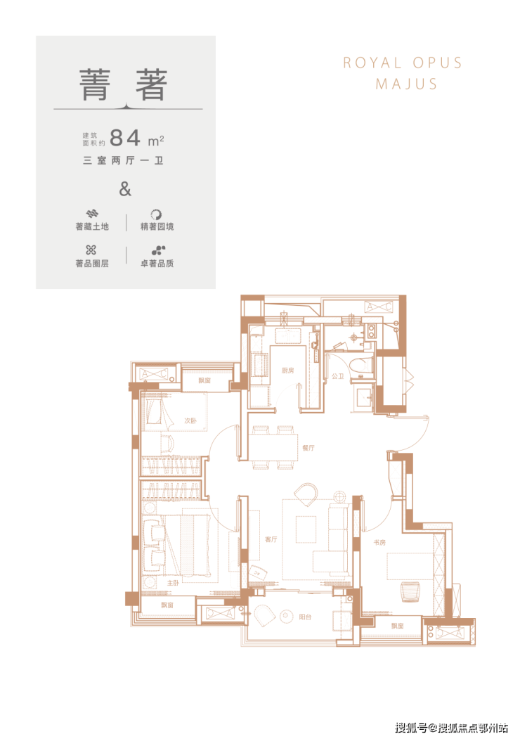 ▲全能三房,全明设计,双卫设计,通透舒适; 南向三开间大面宽,更多阳光照拂,提升生活舒适感;独立书房布局,寓于静谧一角;风雅静逸,满足主人优雅品味