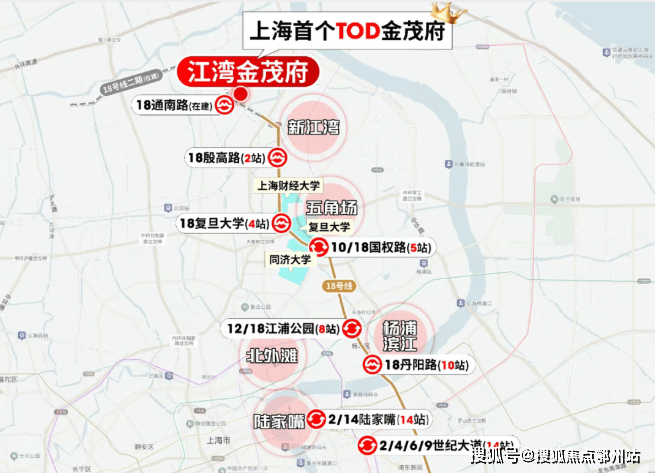要知道江湾金茂府2站就是新江湾、4站五角场、8站杨浦滨江。