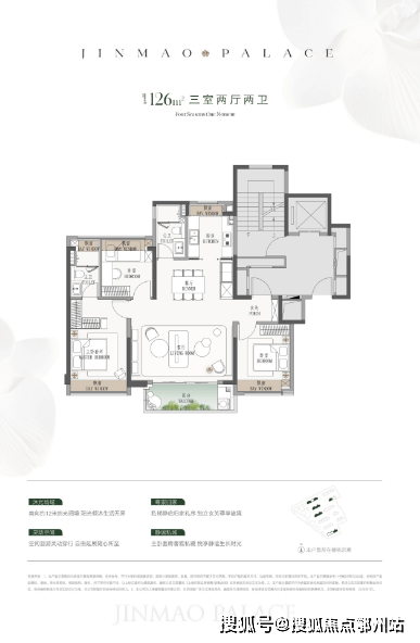 建面约126㎡3房: