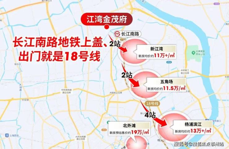 当然,不只是18号线,以江湾金茂府为中心,周边2km范围内,3号线、18号线、19号线三轨交环绕,这立体的交通网络无疑是未来居住圈层,以及二手房价值的坚实保障。