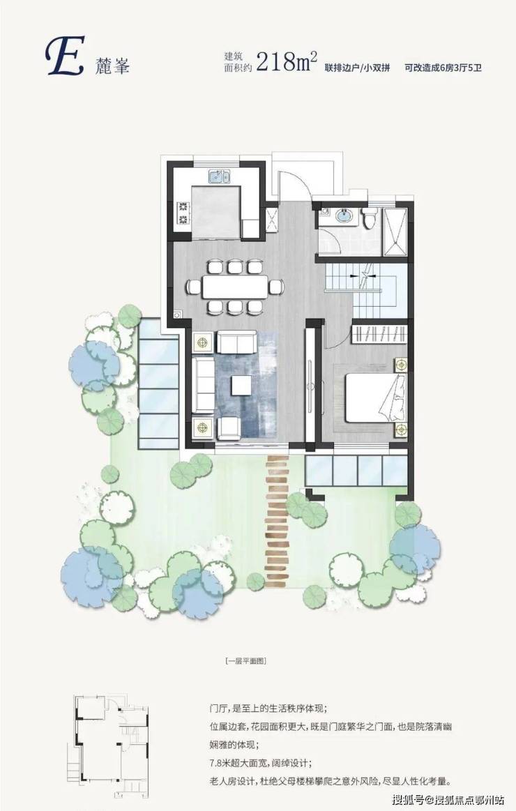 218㎡(联排别墅,双拼设计,边户带花园)
