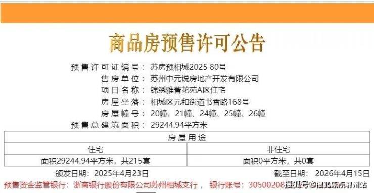在相隔了1年多的时候, 相城区元和板块的中冶国锐锦绣雅著 最新一批次房源取证了!