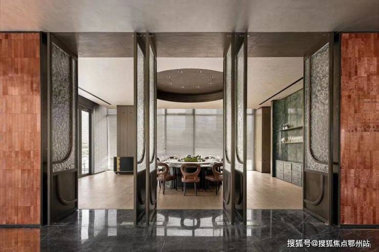 ④ “3”:极简审美风格的立面,使用巴西灰钻石材(首次亮相南通)、香槟金及仿铜铝板、搭配全落地中空 LOW-E 玻璃等,上等材料加拼接工艺,使得整个外 立面成本比常规别墅外立面要高约3倍