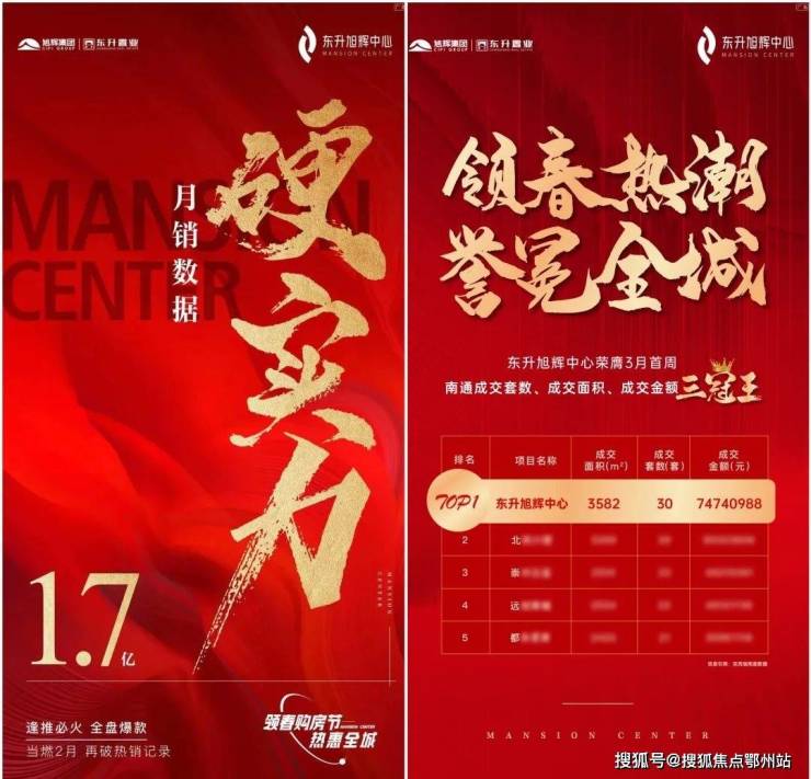 根据南通房产交易数据,2月27日-3月5日,东升旭辉中心备案30套,位居南通市区 商品住宅销量排行榜前列,考虑到网签的滞后性,项目的实际成交可能远超这一数据;