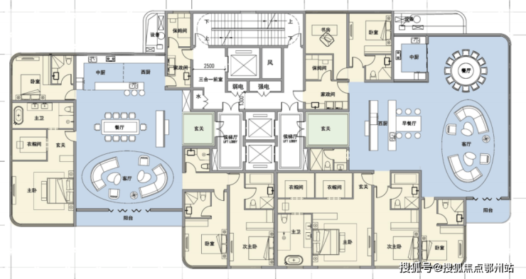 据悉,项目每层层高约3.6米,高层暂定总套数约258套,均为3梯2户(两部客梯+一部消防后勤电梯)+独立前室的豪宅配置。