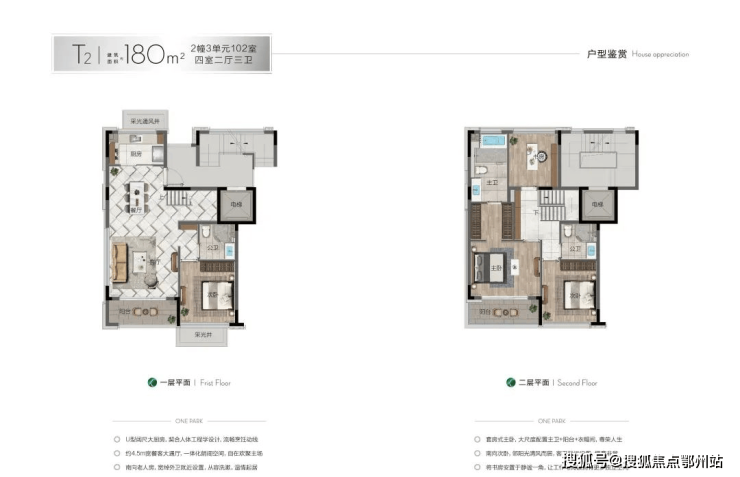 下叠主力户型约180㎡四房三卫,大面积落地玻璃,户型窗墙比超60%,通透敞亮;每户均带南向庭院(约50-60㎡,部分可达100㎡),并创意性做了地下空间。
