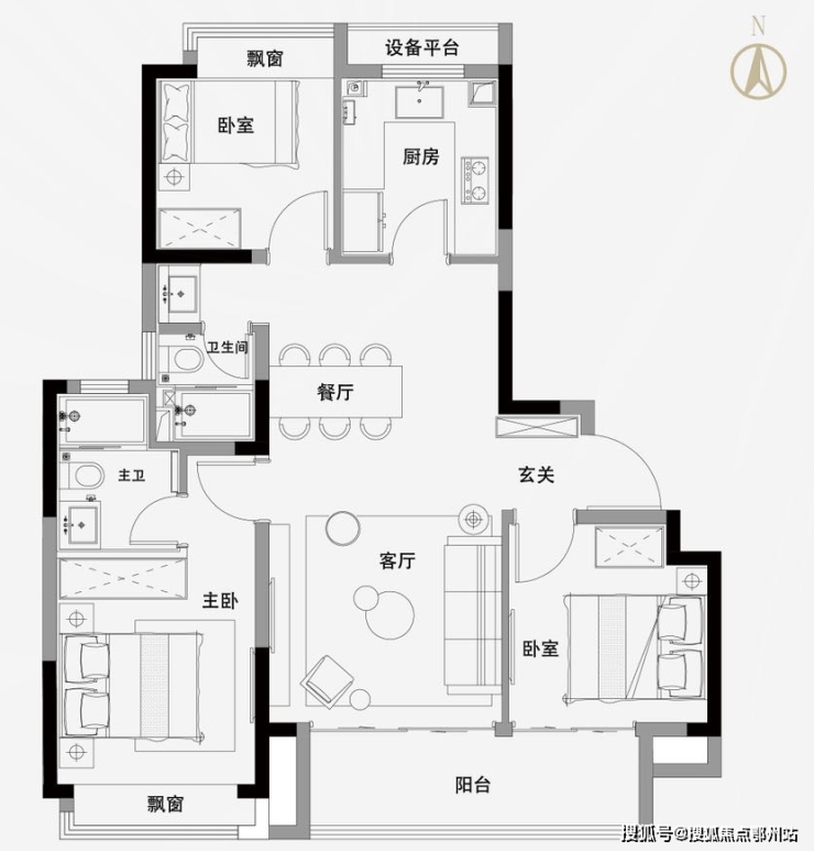 约98平三房两厅两卫
