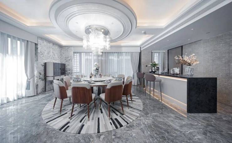 12种进口石材:产地巴西的潘多拉、产地柬埔寨的星耀灰、产地阿曼的阿曼玫瑰......以稀有石材铺陈多重空间,造就奢居风骨。
