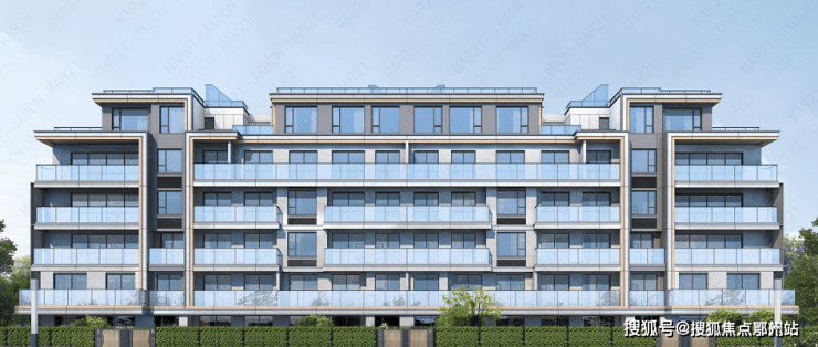 国际前言外立面:整个外立面设计拥有自然美感,用金属线条与仿木漆搭配底层涂料,塑造出都市绿洲的感觉;