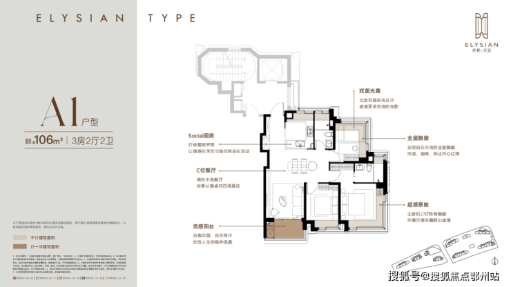 每个户型至少6个飘窗,边套更是约270°转角瞰景。