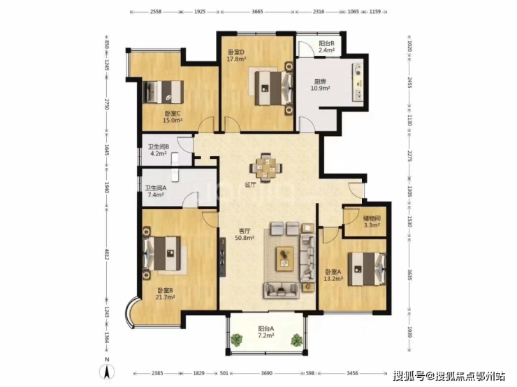 建面:249.19㎡:四房两厅二卫