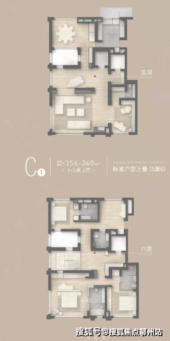 「沁风雅苑」项目1.2的容积率,整体由18栋6层楼的叠加组成,总套数101套,主力面积约311-360㎡叠墅,整体呈倾斜镜像状排列。
