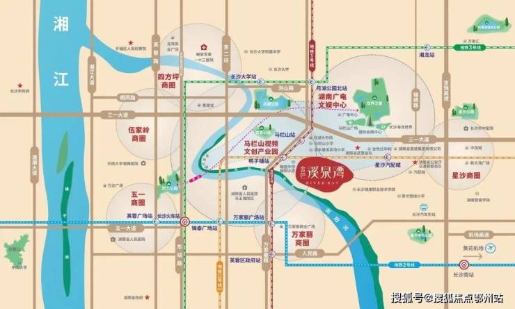 金色溪泉湾位于金鹰月湖板块,临近广电核心,目前属于大马栏山“中国V谷”片区。