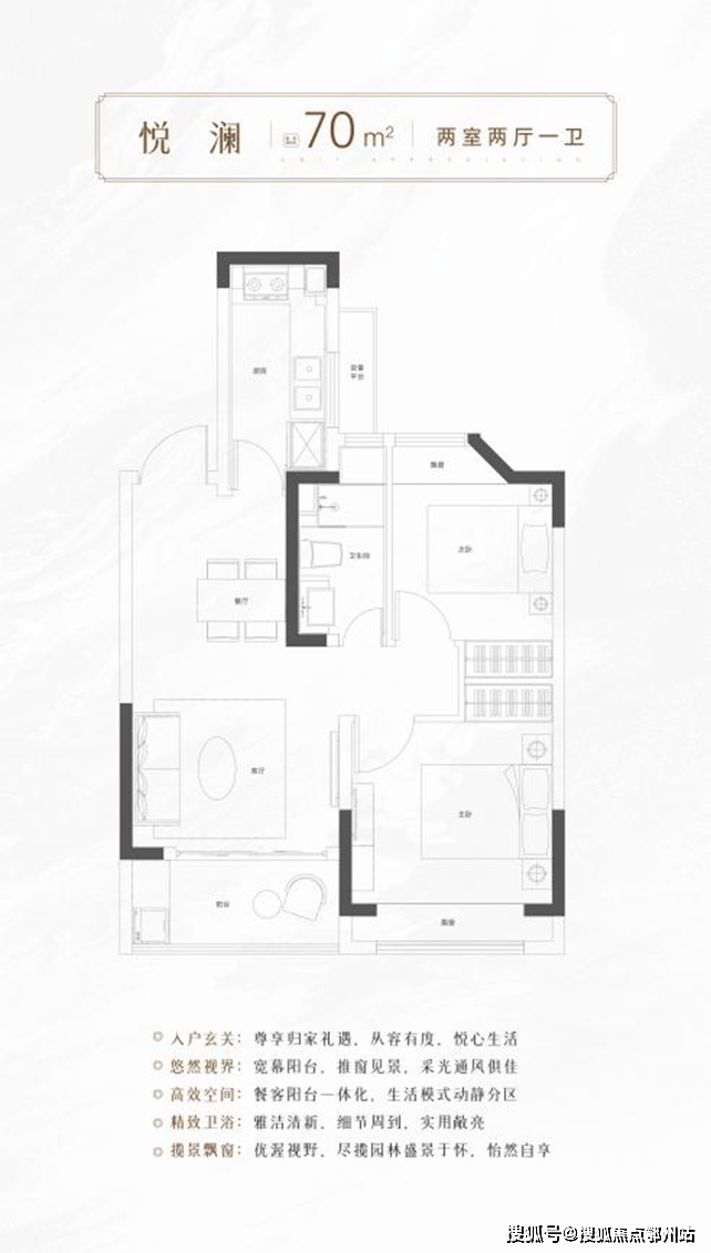 建面约70-90m²悦境高层,精工二至三房户型, 延续墅区景观规划与绿化空间,舒享同等低密环境,举目瞰景,安适悠然。