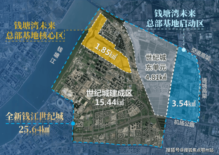 毗邻钱江世纪城的外溢板块,宁围以机场快速路为界,南北向被一分为二。机场快速路以北,就是近几年被我们熟知的钱塘湾未来总部基地。