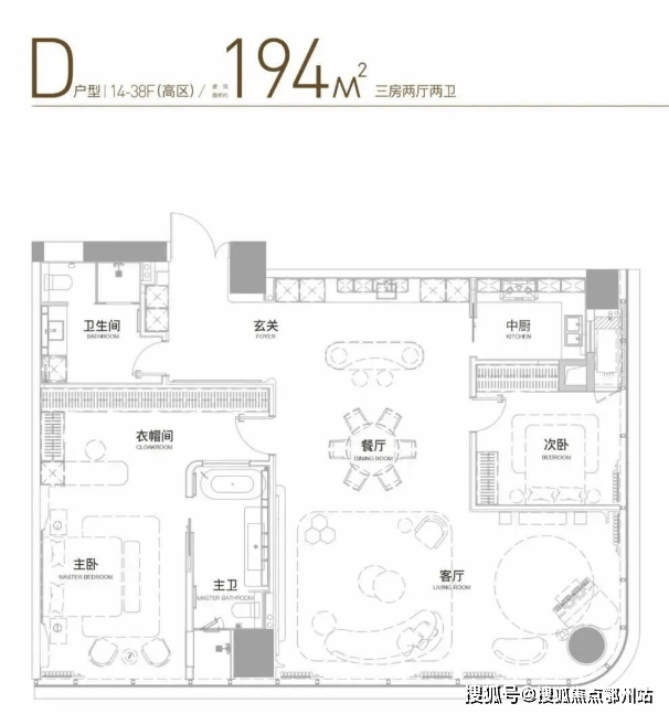 新希望D10天元占地面积约2.35万方,总建面约14.9万方,容积率6.34,住宅共约490户,机动车停车位1391个,车位比约1:2.84。包含4栋大平层住宅和一栋商业,以及1所幼儿园。