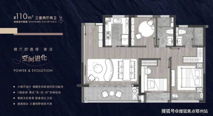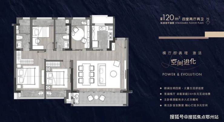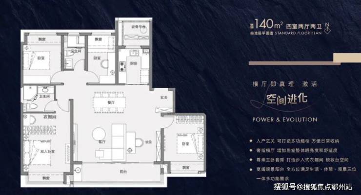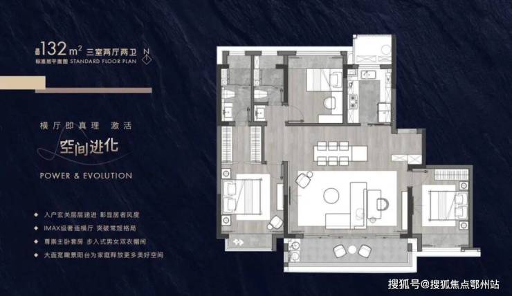 建筑面积约102-143㎡进阶户型带来全生命周期的舒居空间,全横厅设计诠释大尺度场景,阔境阳台、主卧套房设计,配备有独立卫生间和衣帽间,满足面面俱到的理想人居。