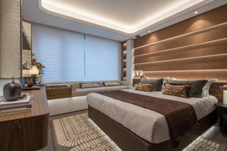 在精装修标准上,项目也是满格配置,比如 中央空调,客厅岩板背景墙、墙面高档墙布;厨房老板三件套 (燃气灶、油烟机、洗碗机) 、可移动插座、多功能大尺寸水槽 ;卫生间方面, 双智能马桶、暖风机、双面镜柜 ……