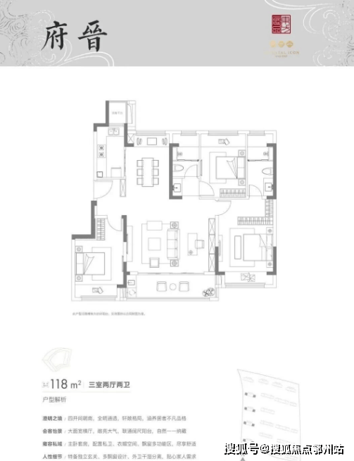 从社区大门至入户玄关,皆以“三进礼制”为蓝本,打造归家威仪。建筑立面取意飞檐弧线,勾勒现代东方韵味,中式审美历久弥新。
