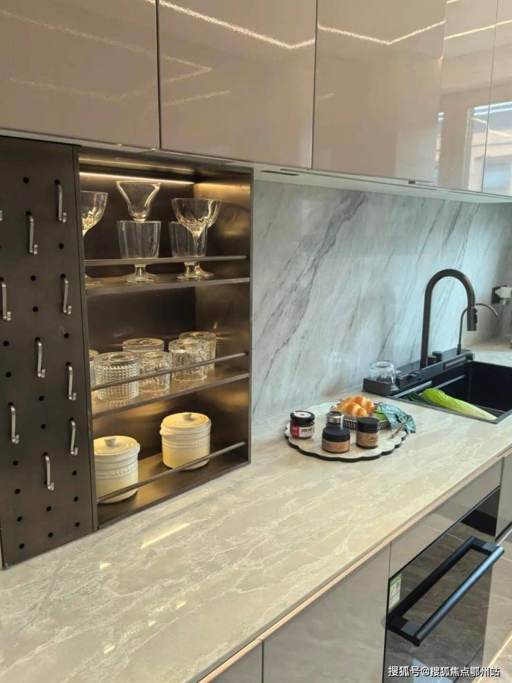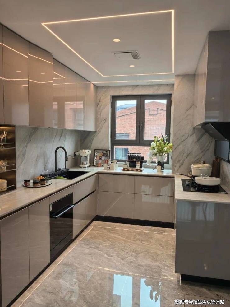 现代简洁是基调,采用朴素亲切的暖灰色调与精致斜切的腰线组合。
