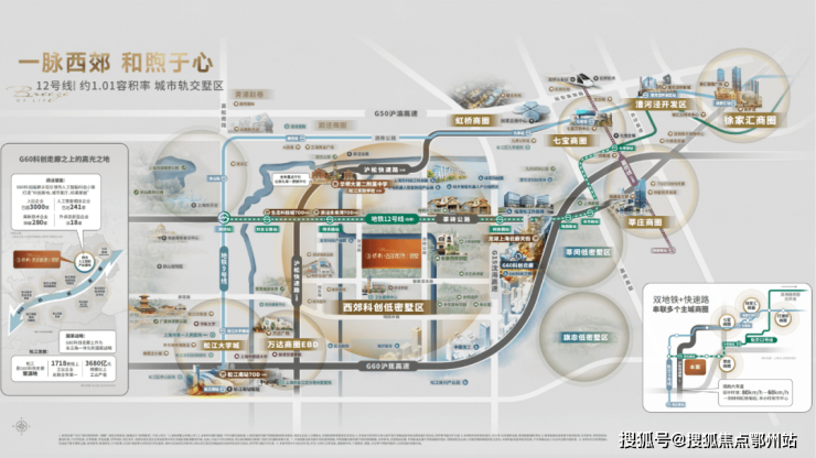 12号线西延长线建成后,从保利西郊和煦出发,1站G60云廊,一脉徐汇滨江,享受四大超级商业巨舰,并能与10条线路无缝换乘,快速接入城市中心!价值逻辑实现颠覆性跃升!