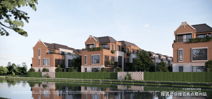 西郊十年未见级臻席低密墅区;约1km双水岸环抱,约20米宽景观生态河道,约270°广角河景。