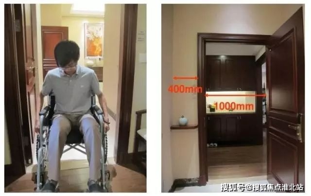 雅园的进户门净宽1米,方便轮椅进门;不光如此,进户门左侧还预留40cm开门空间,方便轮椅者开门。
