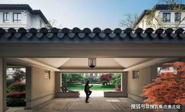 我们来看下图这段别墅区的公共部分设计。从建筑风格、街区尺度、景观铺陈和规划排列上来看,与杭州悦榕庄酒店这个著名项目有着异曲同工之妙。沉稳的风格、精心雕琢的景观意境、安静大气的院落,为主人们提供了难得的有质感的生活场所。