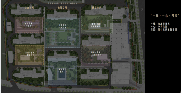 整体理念: 打造有活力、有仪式、有秩序、动静分区的精品生态社区。采取经典的中轴对称设计手法,尊贵礼序的三进式院落归家空间,结合中心绿化及景观带打造出独特的仪式感和尊崇感。