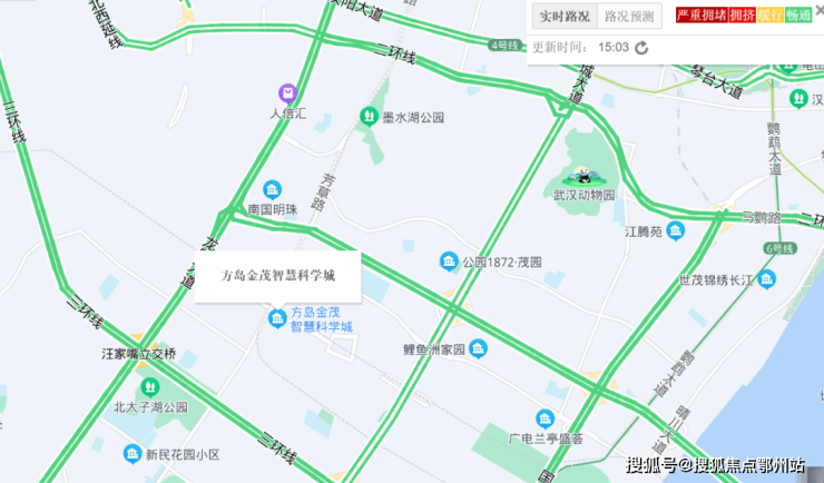 轨道交通方面,方岛金茂智慧科学城是地铁12号线(在建中)和地铁11号线(规划中)换乘站芳草路站地铁口项目。目前距离项目最近是地铁3号线四新大道站约1.3-1.5公里。