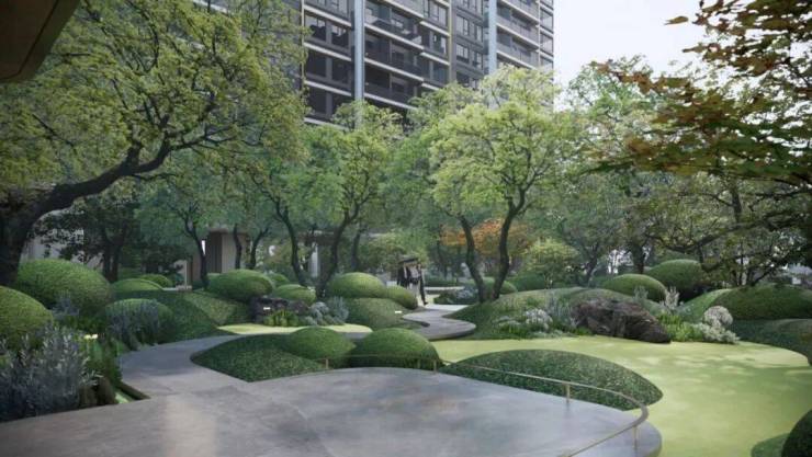 一环一轴五园一带 的景观配套,细节方面融合了中西方的园林造景手法,把海派元素做到了极致,真正给到业主最尊崇的归家仪式感。
