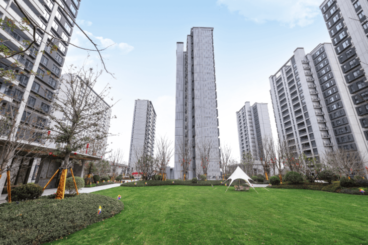 社区园林的营造,以“两轴一环一带五园”为规划骨架,匠心雕琢海派森系园林,综合绿化率约35%的背后,不仅是数据的领先,更是对居住密度的克制和对自然空间的尊重。超大的阳光草坪如一块翡翠镶嵌于社区中央、全冠移植的名贵乔木舒展枝叶,蕴含“四水归堂”传统礼序的主入口景观层层递进,共同构建了一个有层次、有温度、可参与的社区生态。