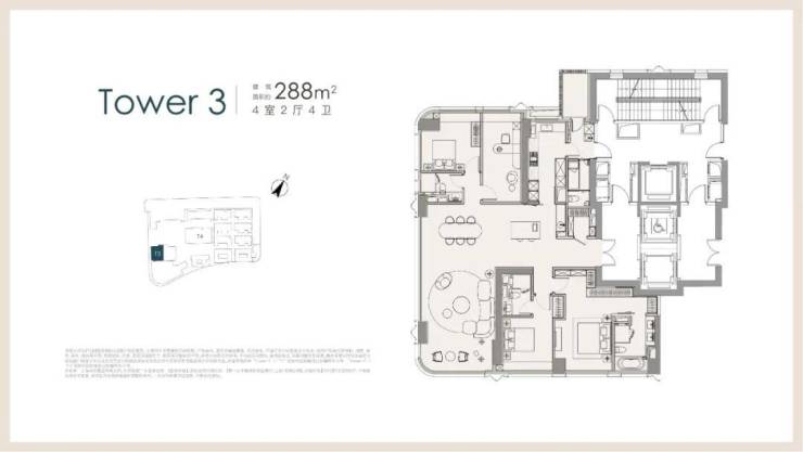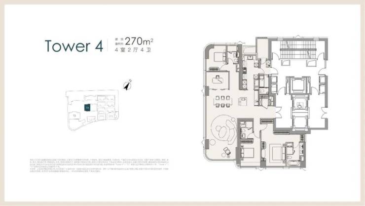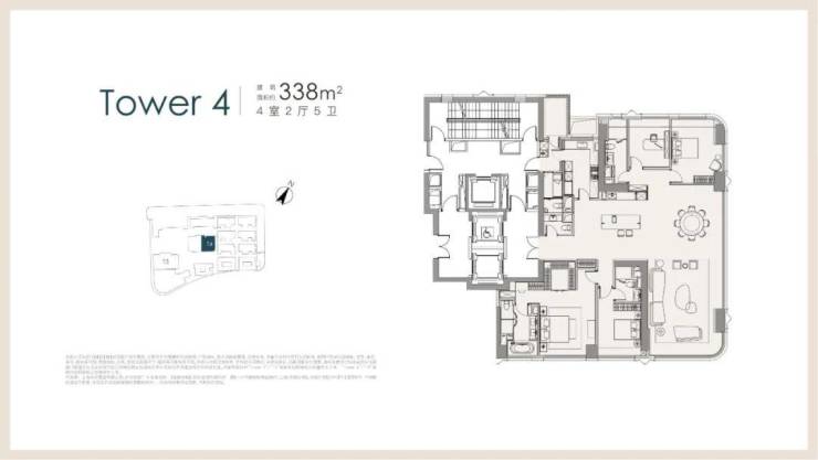项目分为前后南北双地块,各有2栋150米超高层和风貌别墅,超高层44层、层高3.3米,大户型层高约3.5-3.6米。