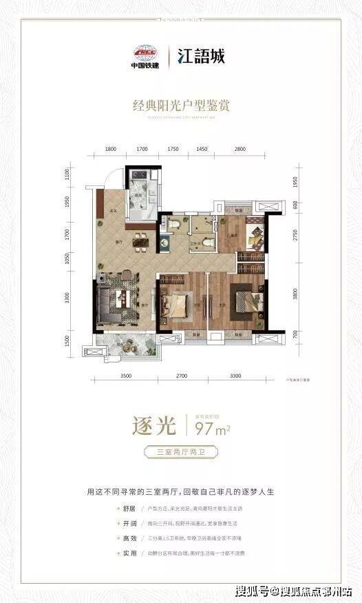 户型三面宽的设计,让热烈与温柔随意切换,南北通透户型,让空气与你的呼吸一并自由,室内配备新风和净水体系,把雾霾锁在屋外,留甘甜新氧于唇齿,享受着清新和纯净。阳光、空气和水,是江语城对健康宜居的不吝期许。
