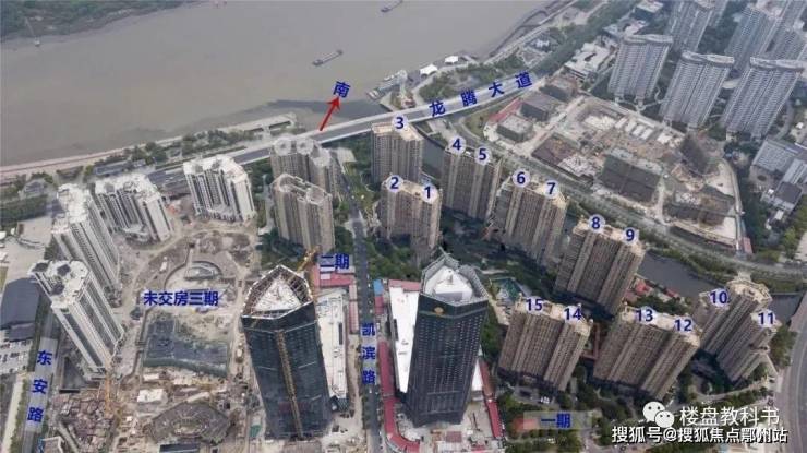 西临宛平南路、北靠瑞宁路,南面黄浦江;中间的凯滨路很自然地将项目分为了南、北两个地块,也就是我们为众人所说的非严格意义的一期和二期。整个项目由16幢住宅、2幢公建楼、一个下沉式商业广场和一个幼儿园组成。