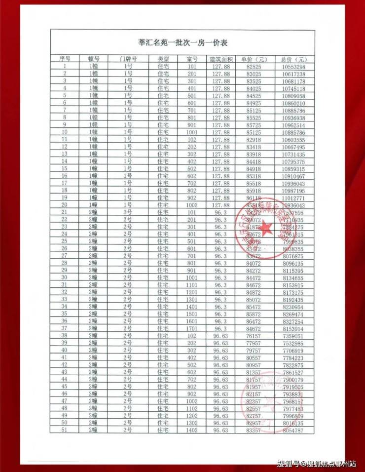 附上一房一价表: