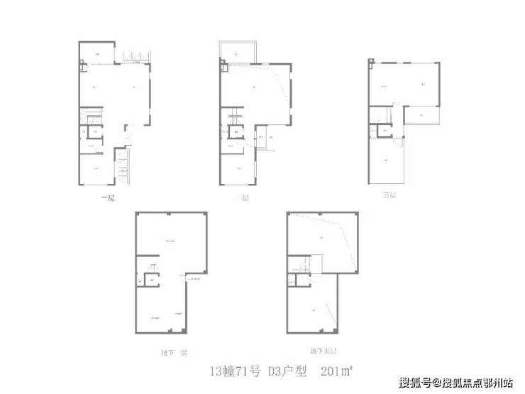 建面约157-176㎡3房,约202-205㎡4房的联排