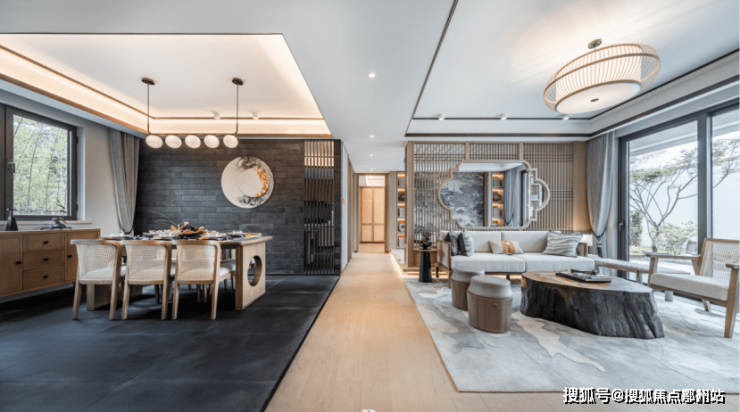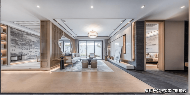 星空顶车库,配置专属定制水纹造型灯孔结合中式窗花元素。 一眼看上去恍若漫天繁星,彰显出业主尊贵的身份感与仪式感。