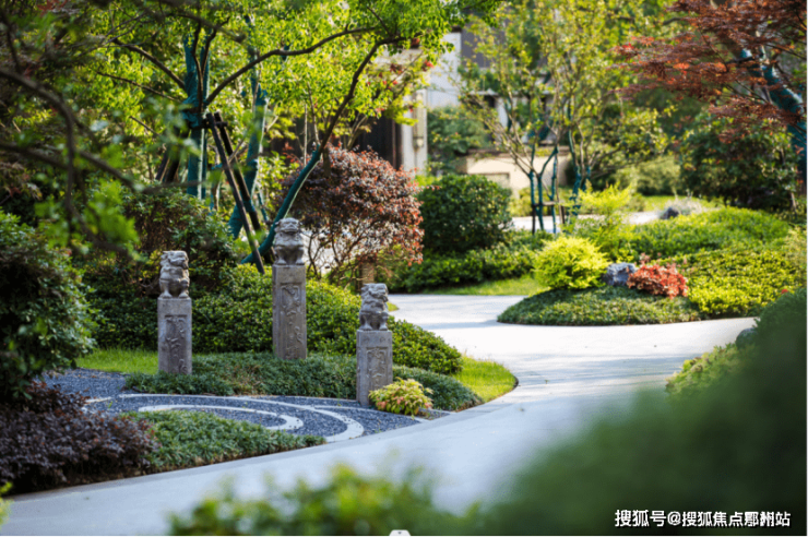 精选植造型乌桕林和形态饱满的香橼林,两侧搭配精致中式韵味的拴马桩,打造独特的林下游园。整体设计 绿化缓冲、宅间花园等多重空间。