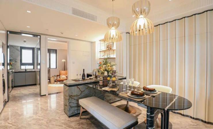 公区设计,巧妙融入百乐门印象、沪西电影院等文化元素,将过去记忆植入场景。嘉佩乐酒店式门庭、琉璃光廊式车库、海派人文哲思花园,以“深度酒店化”营造 归家艺术之旅。