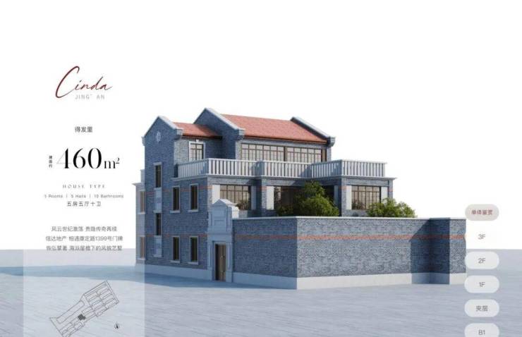 地下1F志趣空间, 约7.2m层高 ,私人菁英社交圈层。首层花园入户, 大横厅会晤场域 ,与时代精神际会。二三层静谧于心, 起居室多套房设计 ,梧桐下的栖心之所。 屋顶露台、花园庭院,超大附赠面积 ,藏身心于天地恢弘。
